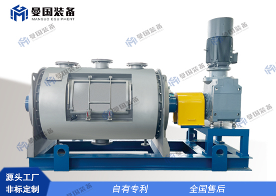 干燥機筒體設置夾套和保溫,當含一定水分的物料進入設備后,設備動部件運轉(zhuǎn)帶動主軸上安裝的多組錯位犁刀攪拌器以及筒體兩側(cè)板位置設置的旋轉(zhuǎn)刮板運轉(zhuǎn),使筒內(nèi)物料產(chǎn)生不間斷漩渦離心力,不斷重疊翻轉(zhuǎn),同時在結(jié)構上避免攪拌死角問題。查看更多 + -
